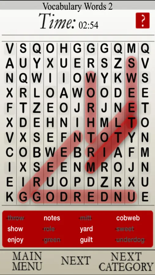 Select the words by tapping on the start and then tapping on the end of the word you have found. When the correct words are found they are automatically crossed out. Find all 12 words to get a new puzzle.
