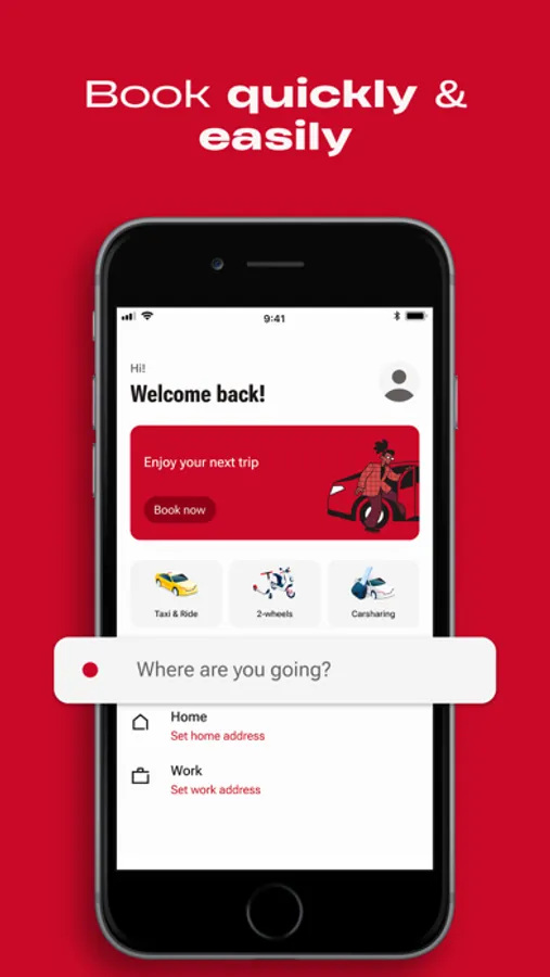 With FREENOW, the Mobility Super App, you can book taxis and more. We’re also in 9 countries across Europe, so you can use the app wherever you go.
