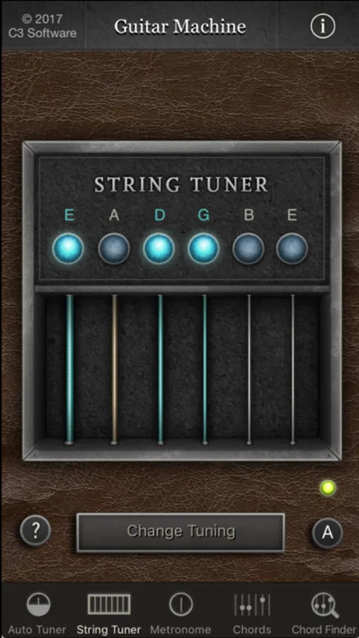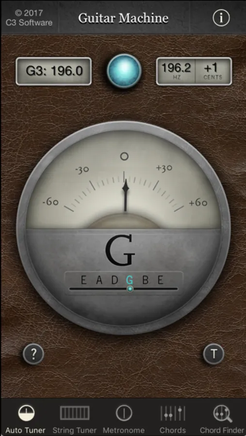 - Auto-tuner is highly intuitive -- The UI is geared towards both chromatic tuning and string-based tuning simultaneously with a beautiful intuitive interface. The top dial allows you to tune with sub-cent precision, while the bottom 'string track-light' lets you know where you are relative to a real string (just in case your plucked string is way off). If you decide to use the string-based approach, over 40 alternate tunings are supported! Or, you can tune to ANY pitch with the chromatic tuner, with extreme accuracy.