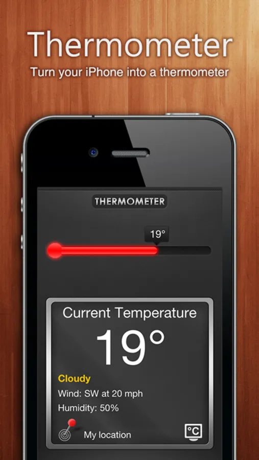 Thermometer is the original and top selling application that turns your iPhone or iPod Touch into a thermometer. This application will tell you the exact outside temperature based on your current location (GPS or WiFi). An animation will show you the current outdoor temperature on an stylish red LED thermometer.