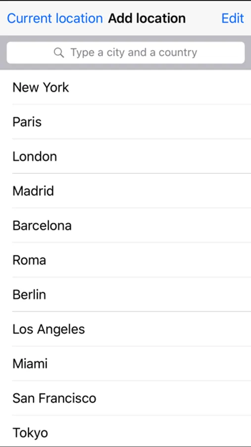 ◉ You can check the temperature for other cities. Choose the city you want to see weather for by scrolling through your saved cities. You can add or delete cities, and reorder your list. PLEASE, ENTER THE CITY AND THE COUNTRY.