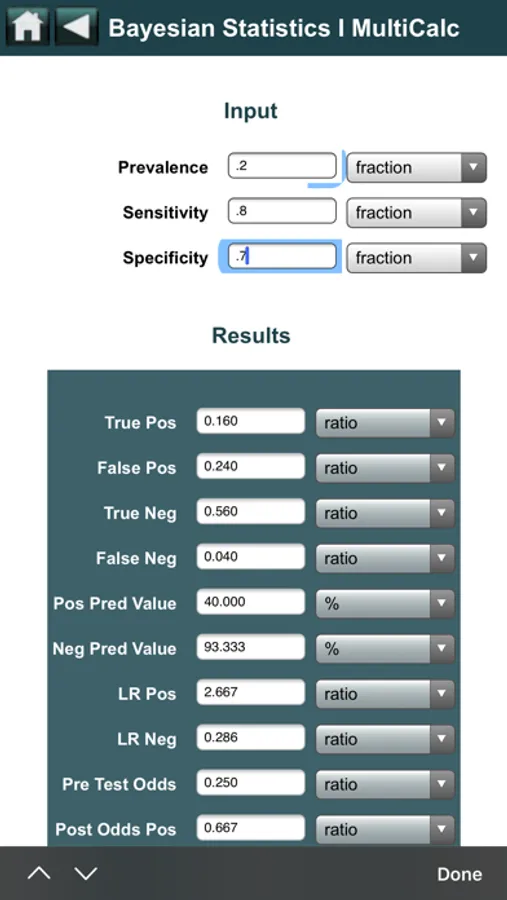 Post Test Odds from Pre Test Odds and Likelihood Ratio MultiCalc