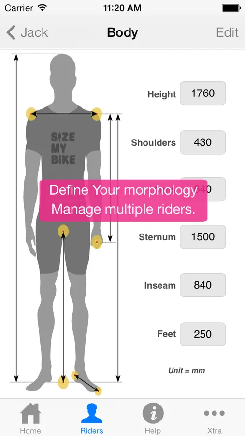 SizeMyBike is the first iPhone bike fitting app. Essential to choose the right bike size and improve your position! Define your morphology with 6 body measures and SizeMyBike will compute the optimal geometry of your road bike or your mountain bike. Easy, fast and efficient!