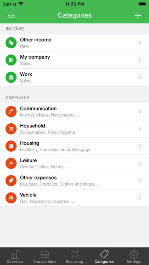 3. A flexible category structure where you add the categories and subcategories that suits you and your lifestyle.