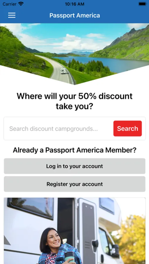 Passport America is the Original 50% Discount Camping Club since 1992. Members, fellow Campers, and RV Enthusiasts alike can hit the road with confidence with our Redesigned, ALL NEW and Improved Passport America app! Our FREE interactive app allows you to quickly find over 1,100+ affiliated Passport America campgrounds and RV Parks by City, State and Country. Now, finding nearby campgrounds and RV Parks is easier than ever using our "Find Parks Nearby" feature, based on your device’s current location.