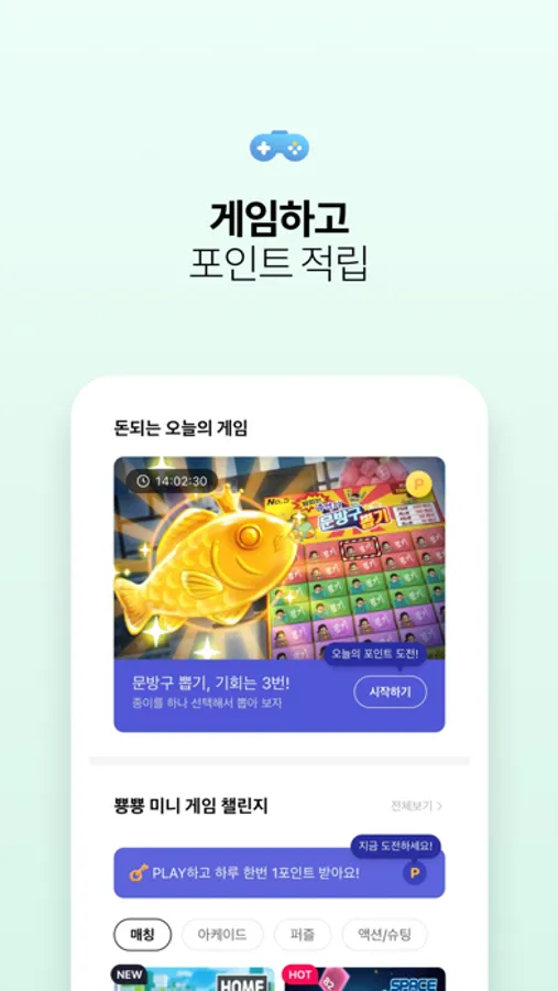 매일매일 게임을 즐기고 포인트도 적립 받으세요!