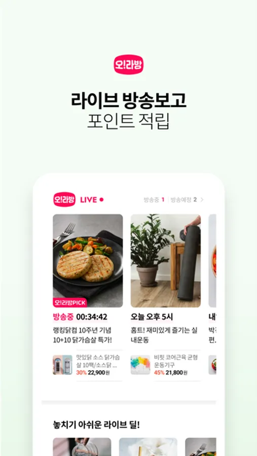 - 라이브 쇼핑 '오!라방'으로 특가템들을 놓치지 마세요!
