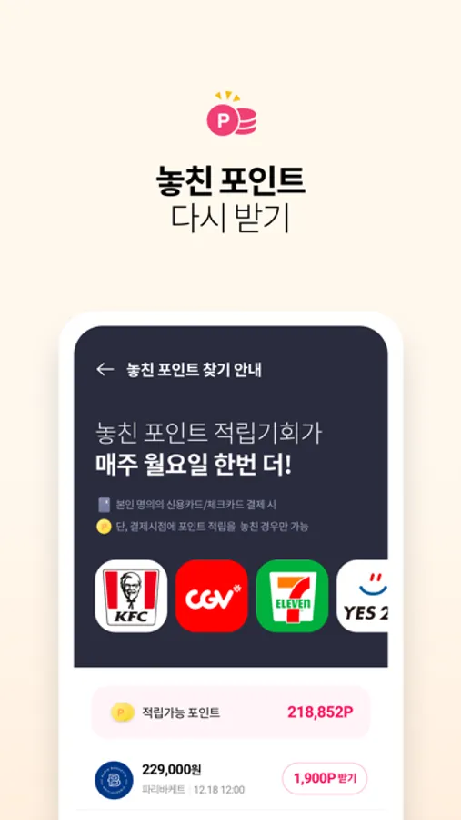 - 포인트 선물하기/합산 : 가족/친구와 포인트도 주고 받고, 합산해서 같이 사용해보세요!