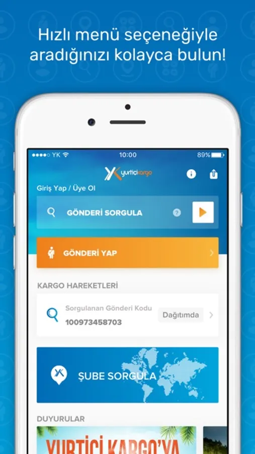 Yurtiçi Kargo, the leader of Turkey’s domestic delivery market, provides all value-added services with its new mobile application.