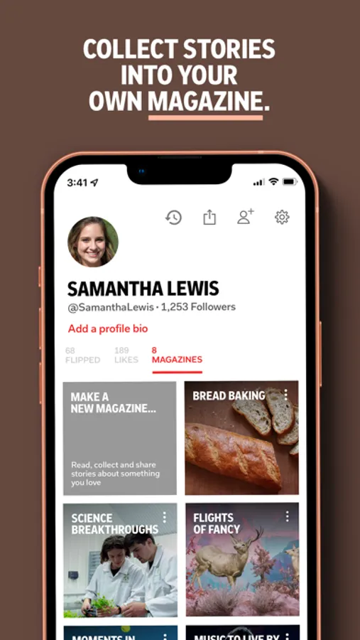 Collect stories you like into your own Flipboard Magazine. Use the + (plus) button on any story in Flipboard to add it to your own Magazine. Make your Magazine public to share ideas and insights with an ever-growing community of enthusiasts curating on Flipboard.