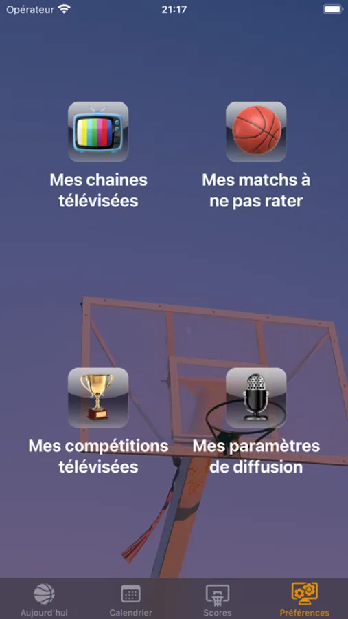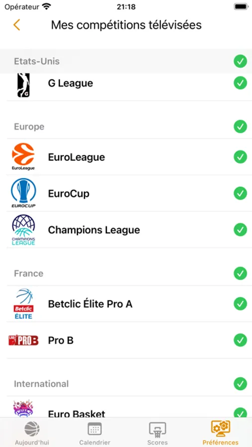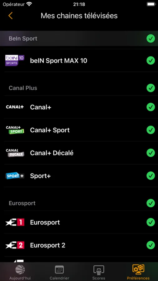 Elle vous permet de paramétrer Basket TV et sélectionnant vos chaînes TV. Ainsi, les programmes de vos chaînes seront mis en avant dans la liste.