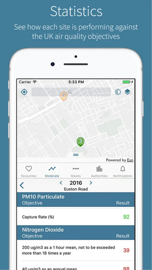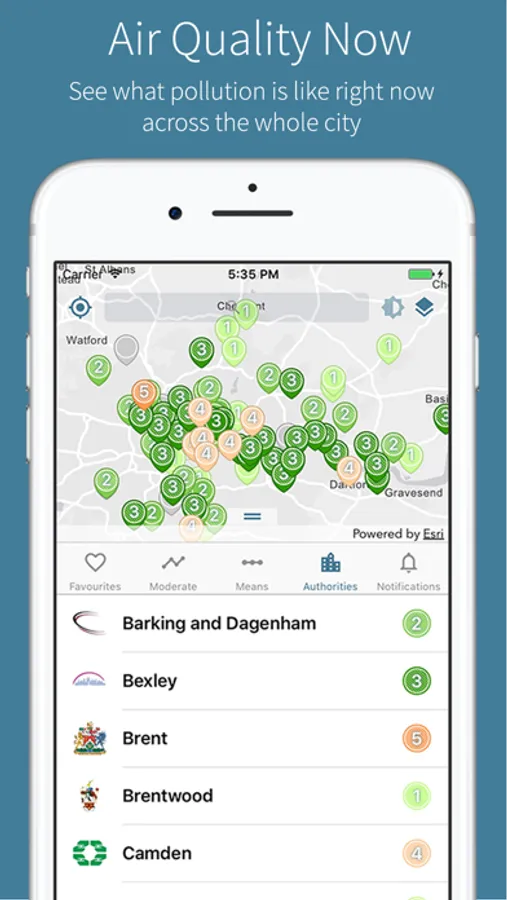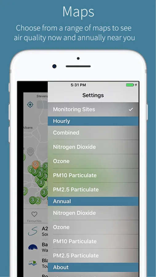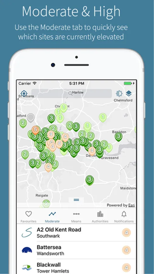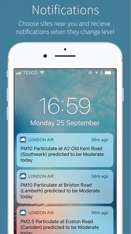Maps, My Sites and Push Notifications keep you up to date with London's air quality where you are.