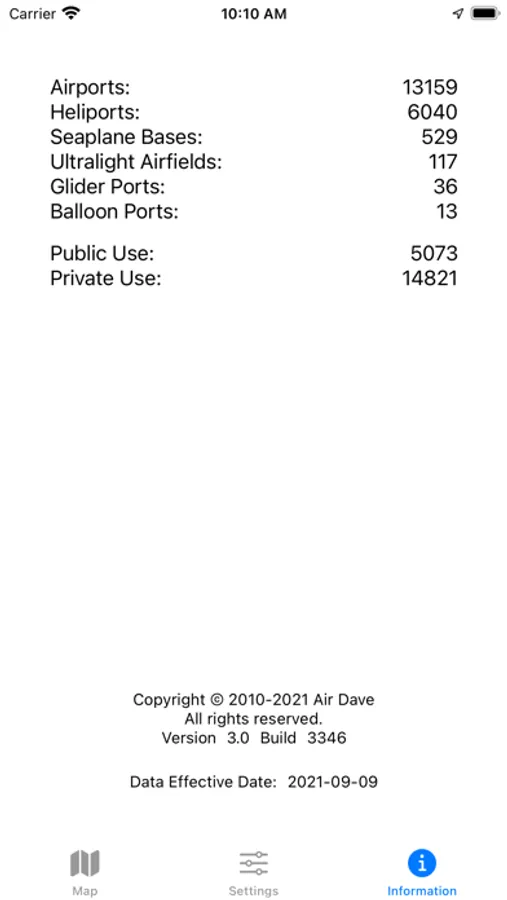 AirportMap uses the mapping capabilities of the iPhone/iPod Touch to display the air facilities in the United States. The app uses FAA data to display airports, heliports, glider fields, ultralight airfields, seaplane bases, and even balloon ports.