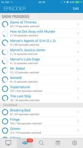 With Episoder you can keep track of all of your favourite TV series. See when the next episode is scheduled and read episode summaries. You can mark episodes that you have already seen, and read about the upcoming ones. Get an overview of your progress for each show, and instantly see what to watch next!