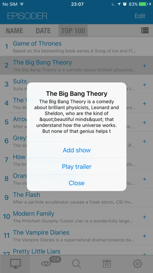 Discover new shows in the Top 100 and with show suggestions. This list is our collection of the most popular shows. Read summaries and watch trailers to see what shows you could start watching.