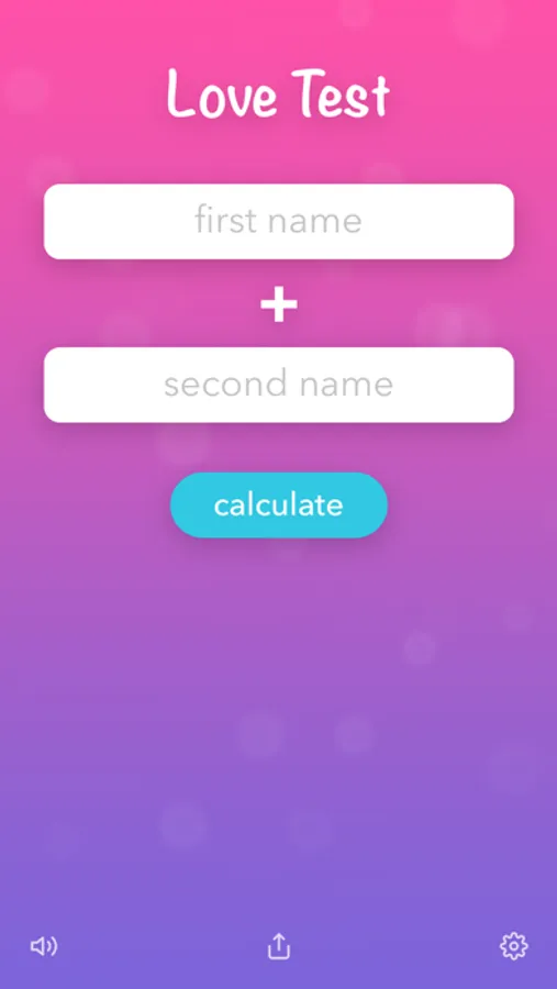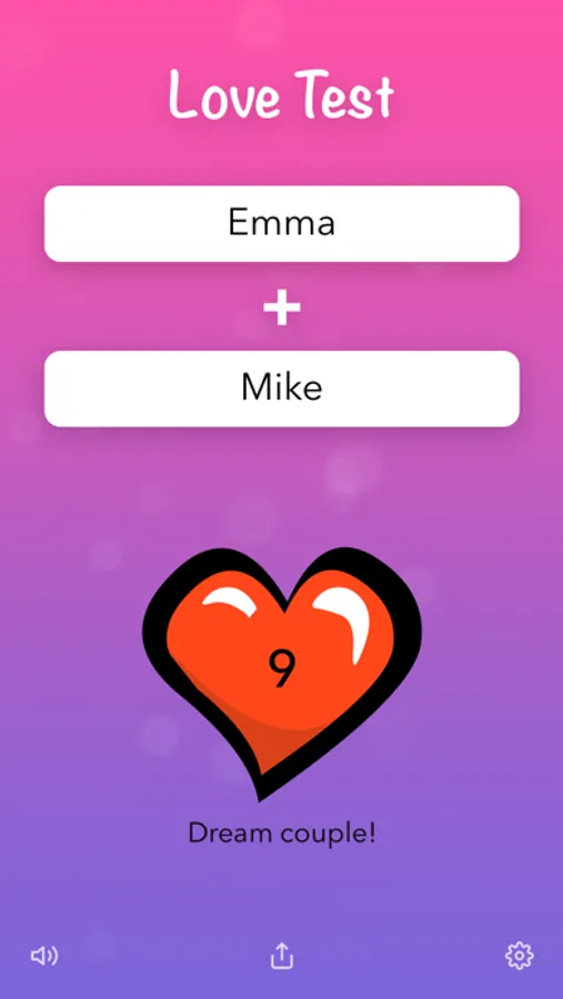 Just type in two names, tap "calculate" and the heart will fade to red. The more red it gets the better the chances!