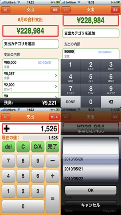 ●起動ショートカット機能:起動後に「今月の収入画面」、「今月の支出画面」にショートカットできる機能。