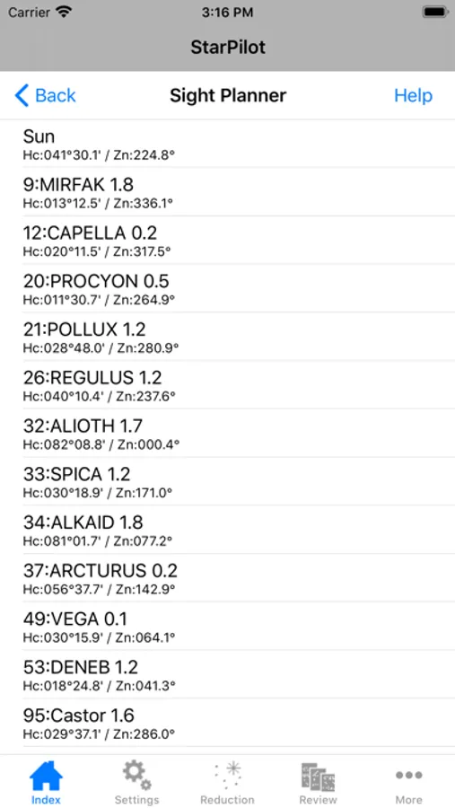 StarPilot does celestial sight reductions of all bodies using high-precision internal almanac, plus mathematical and graphic solutions for position fixes, great circle, rhumb line, traverse and composite sailings, all current problems, piloting solutions, and much more...including lunar distance method of finding GMT from the sky and a unique graphical Sight Planner, and the new Sight Analyzer function that helps you get the most accurate results from a series of sights.