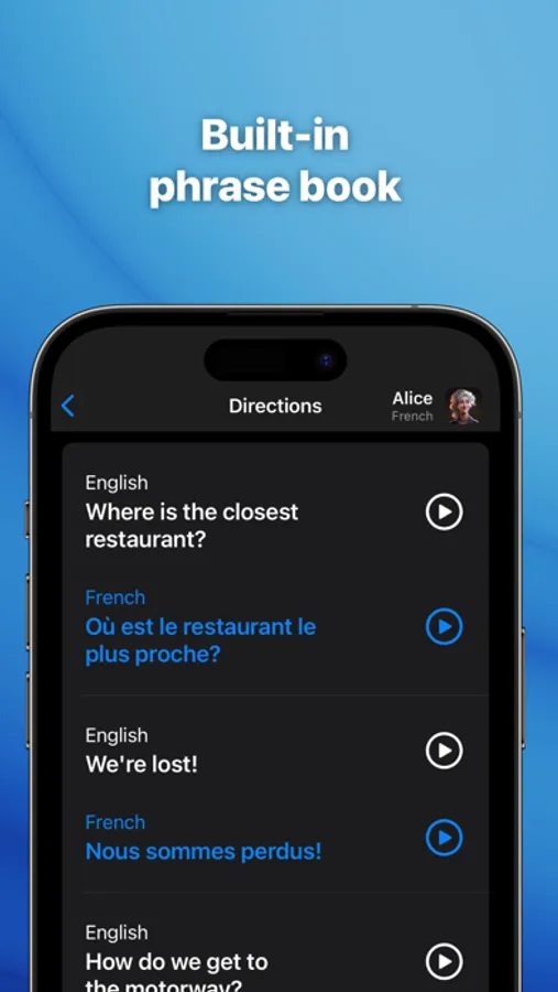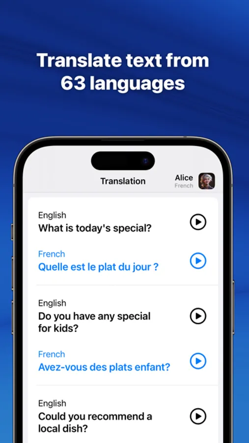 In addition, synthetic voices are available as in-app purchases, so you can listen to any phrase or word in 21 different languages by downloading a voice. This feature makes your translations even more authentic, allowing you to immerse yourself in the language and culture you're learning.