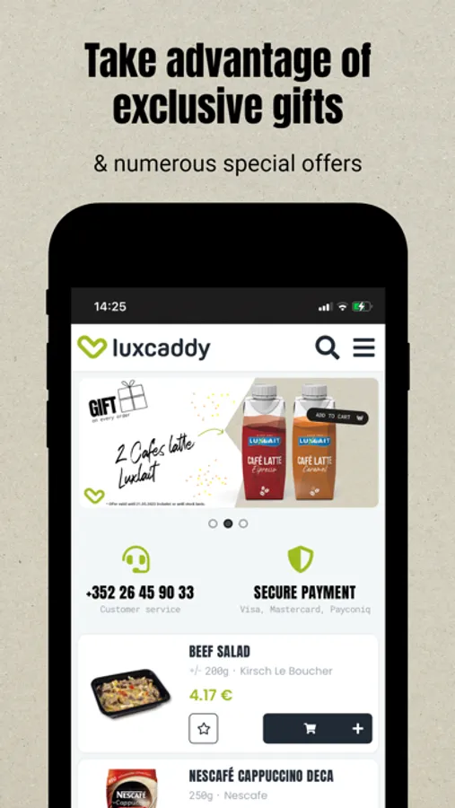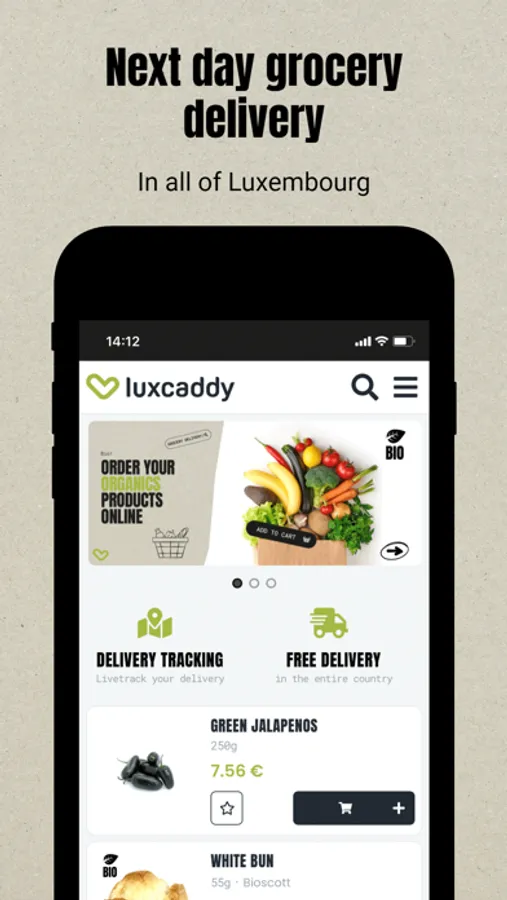 Have your groceries delivered the very next day EVERYWHERE in Luxembourg by ordering on the Luxcaddy mobile app.