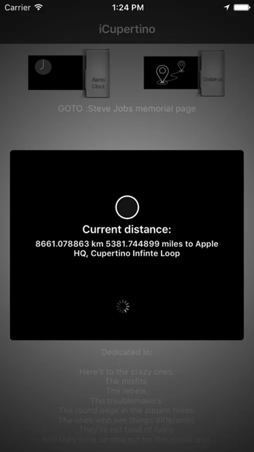 It always tells you, how far away you are from Apple's headquarter in Cupertino, Infinite Loop, California, USA in miles and kilometers !
