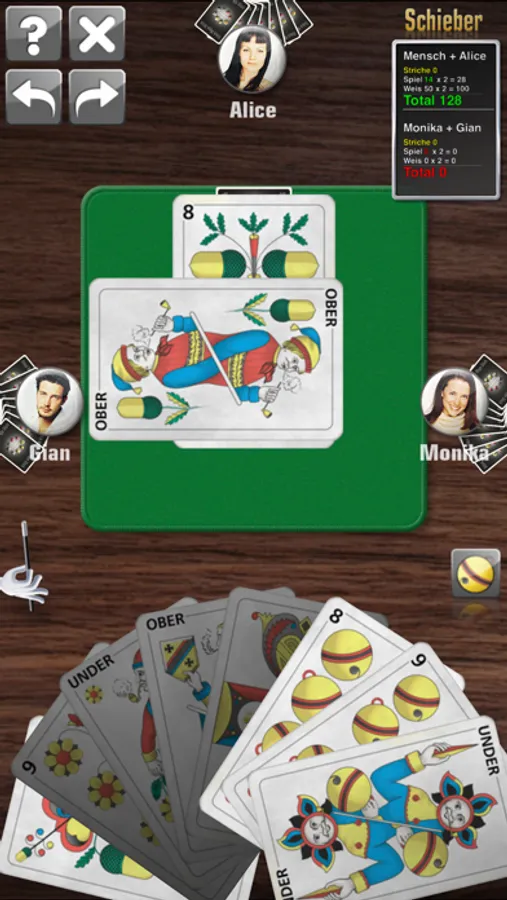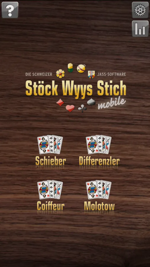 Stöck Wyys Stich mobile spielt mit den deutschen oder französischen Karten.