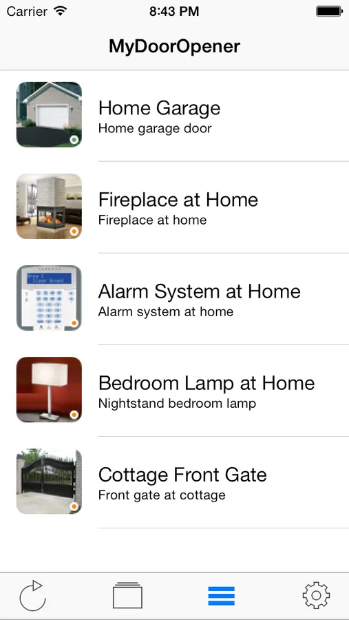 Simple and lightweight application that allows opening/closing/monitoring your home garage door or just about any other device that be can be relay controlled, such as: alarm systems, gates, gaz fireplaces, lamps, electric motors, etc. Let this application be the remote control to your home automation system.