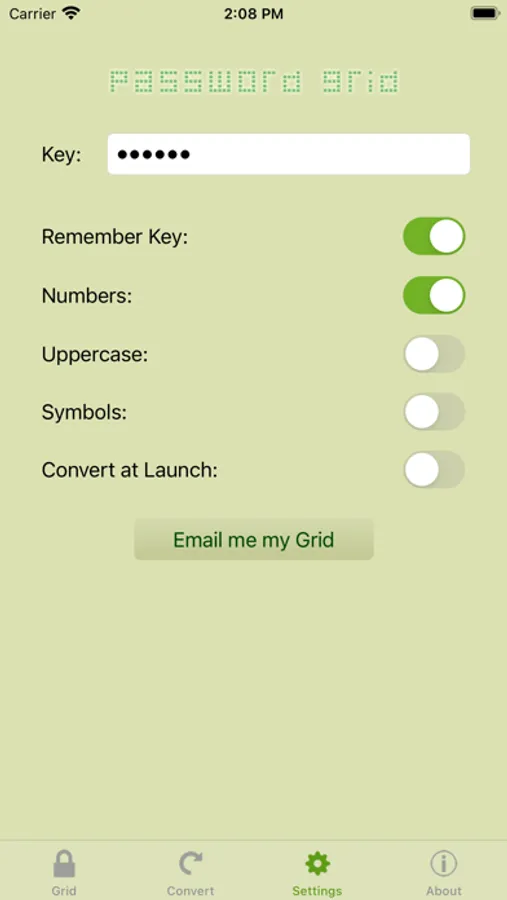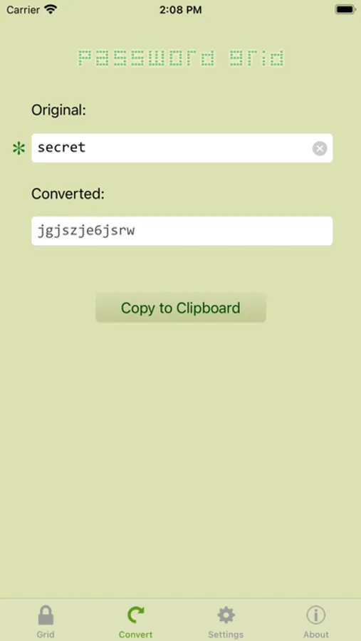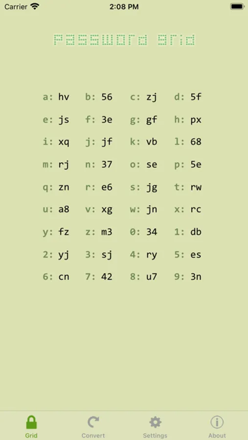 With the grid, you can visually convert an easy to remember passcode (like "secret") to something safer (like "8A2sN34v2s5T").