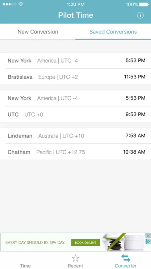 - Show the 3 time zones you looked at most recently, plus UTC time.