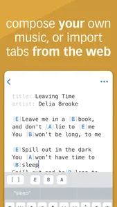 In this app, you can create, edit, and print guitar tabs and import tabs from the web. Includes features for importing, exporting, and defining chords with diagrams.