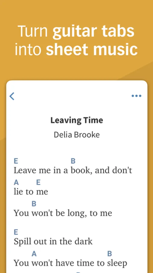 Tap on chords to hear how they sound, or tap on lines of tablature to hear them played.