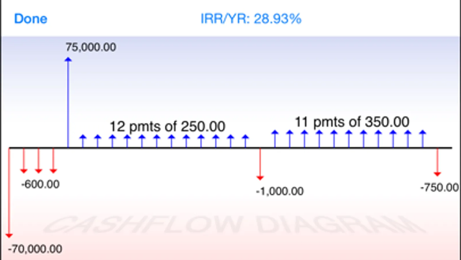 - Draws Cashflow Diagrams for simple TVM or complex Uneven Cashflows
