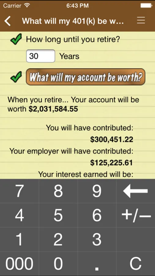 Get answers to common financial questions WITHOUT having to know how to use a financial calculator! With the 10bii Financial Calculator's Easy Modes, answer a few simple questions worded in plain language (rather than Financial-ese) and find out just how much you'll save with that refi, how much you'll have at retirement, how long it'll take you to save up for that big purchase and more. Now with 12 Easy Modes!