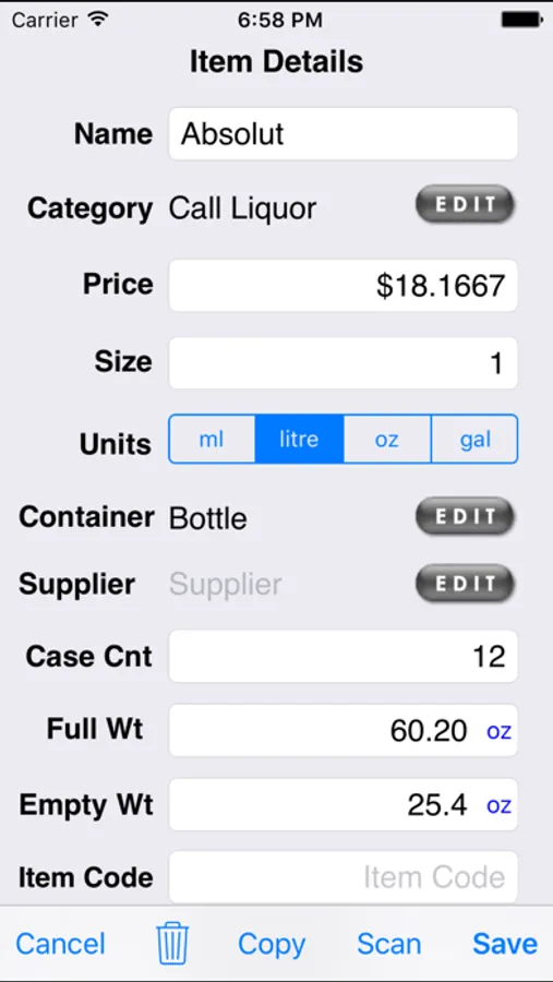 - Automatic Product lookup from Barkeep's extensive liquor database