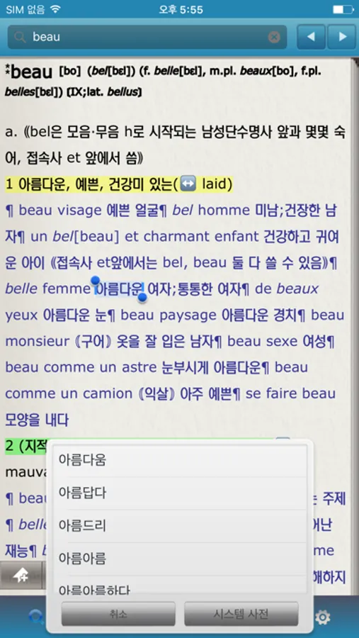 종이 사전의 감성을 살린 UI/UX와 편리한 기능의 ‘프라임 불한/한국외대 새한불 사전’ 애플리케이션을 만나보세요.