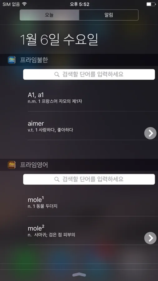 1. 사전 위젯 기능 제공