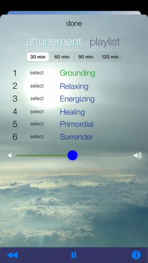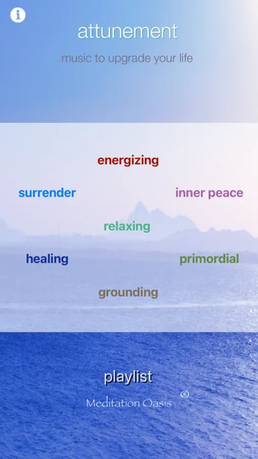 Seven selections of exquisite Meditation Oasis® music to suit your mood and needs. Whether you want to meditate, practice yoga, relax deeply, get energized or heal, the Attunement App has music for the occasion. You can choose from 7 different selections, each of which creates its own special effects as you listen: