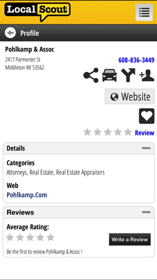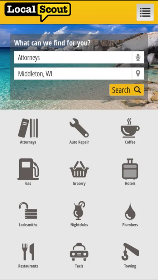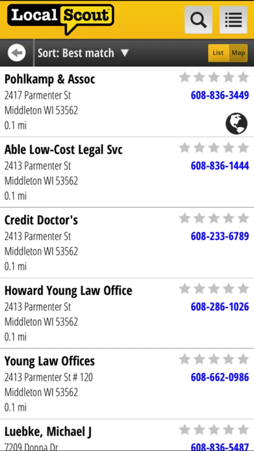 Search the Yellow Pages for businesses in your area or any city nationwide. Access business addresses, phone numbers, websites, email, ads, coupons and other enhanced listing data of our participating yellow page publishers. Sort by distance to find the closest results or sort by relevance of your search term. View results in a list view or toggle through results on a map. Zoom and scroll features in the map view allow users to find results in any area. Easily find local businesses anywhere in the United States with the LocalScout iPhone Application.