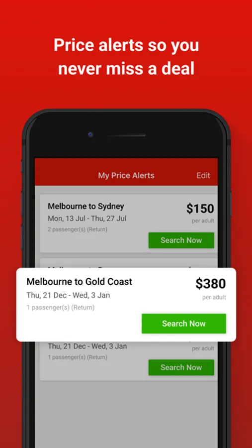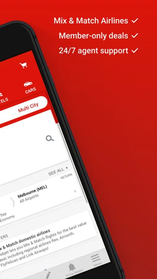 Our easy to use flight search box will have you viewing deals in a few quick taps. Filter your results by airline, stops, departure time, total duration or price. From aircraft type to in-flight features like WIFI, meals, legroom + much more, all the information is clearly displayed for you to make the best choice. ‘My Cart’ allows you to add (or remove) flights, hotels, car hire, and travel insurance to your flight booking. Use the ‘recent searches’ feature to retrieve details of your previously searched flights. You can also view upcoming trips in your profile or on the home screen close to your departure date and track the flights in real time.
