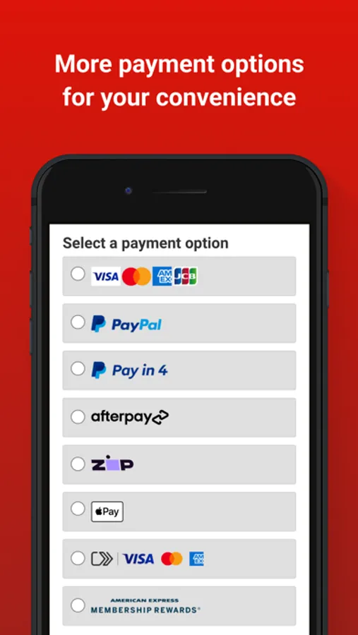 o Buy now, Pay Later (Afterpay, Zip, PayPal Pay in 4);