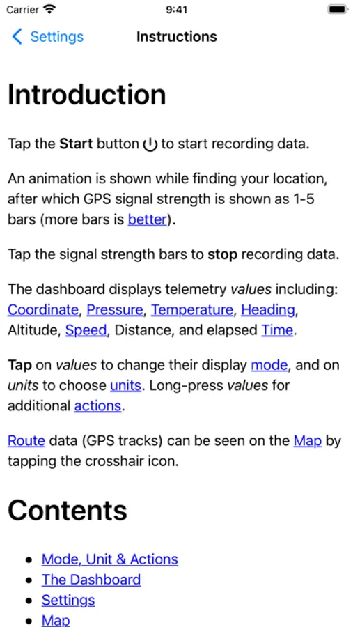 I bought this app because i needed one that showed magnetic heading, as well as groundspeed for my experimental airplane. Wow, it does so much more, and displays in landscape or portrait. Can change display colors, review flight later with speed, times and altitudes, and the instructions are fantastic, great product, worth a lot more than I paid for it!!