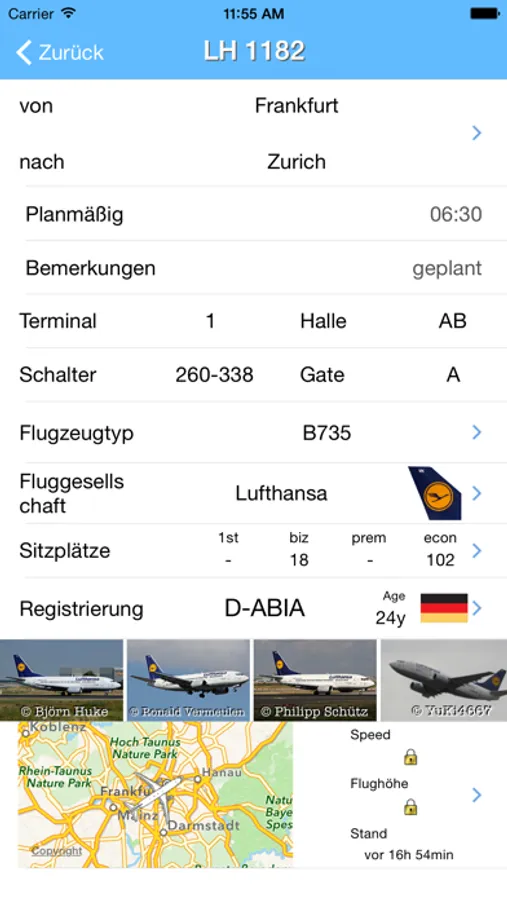 Flight arrival and departure time, flight status and destination are synchronized with your iPhone (iPhone 6, iPhone 6 Plus) and iPad.