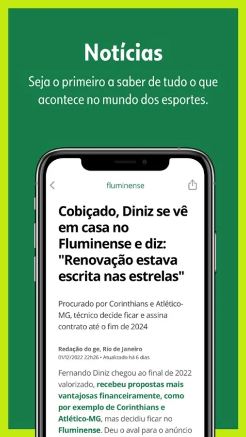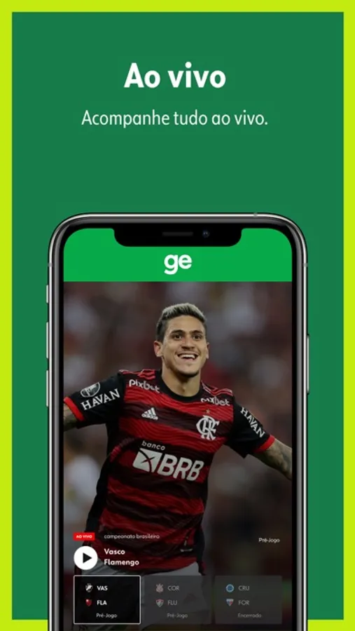 No aplicativo do ge, você acompanha ao vivo no celular tudo sobre seu time do coração, as principais notícias do mundo do esporte e jogos de vários campeonatos nacionais e internacionais.