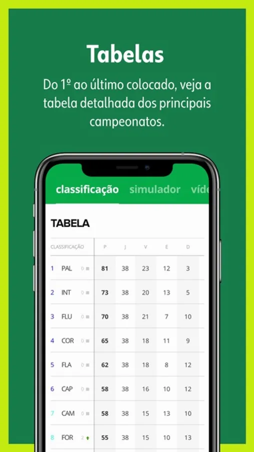 O app do ge tem ainda as tabelas dos campeonatos estaduais, nacionais e internacionais para saber quem luta pelo título ou contra o rebaixamento.