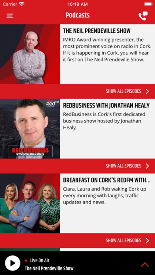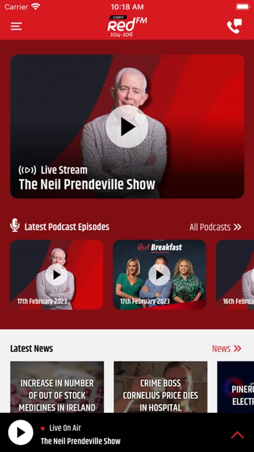 Listen live to Cork's RedFM. Get the best local news, sport and conversation. Tune in to The Neil Prendeville Show from 9am-12pm every weekday for the latest on what's happening in Cork and beyond. We've got the latest and greatest music to keep you entertained throughout the day!