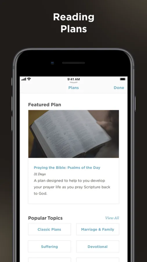 • Free Reading Plans. Make Scripture reading a habit with 60+ Bible reading plans featuring content from well-known Bible teachers such as Jen Wilkin, Paul Tripp, Charles Spurgeon, Nancy Guthrie, Kevin DeYoung, Gloria Furman, and more. New reading plans are added every month.