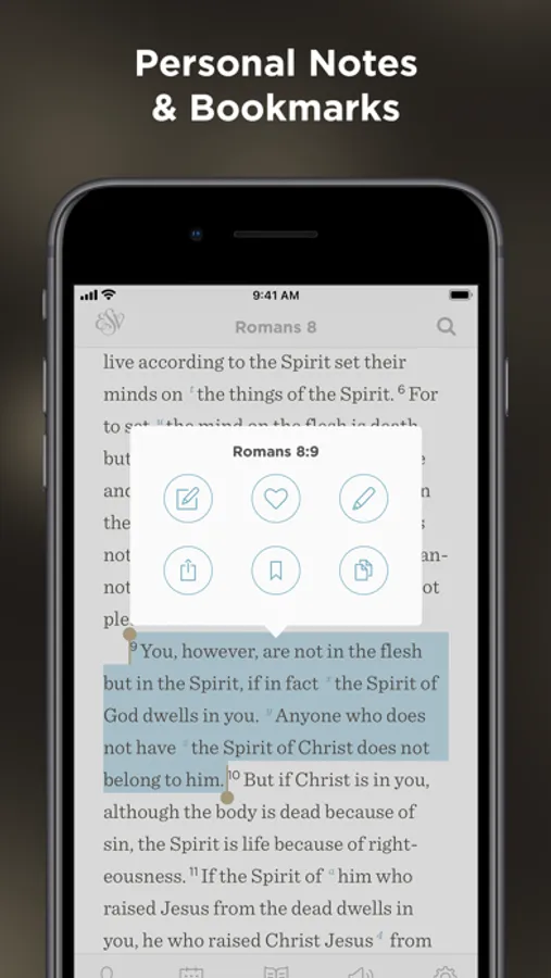 • Highlight. Highlight and bookmark favorite verses with just two taps.