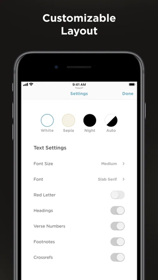 • Read. Dig into the English Standard Version via an elegant interface designed specifically for mobile devices. Quick access to cross-references, split-screen reading, and a distraction-free reader’s mode make it easy to engage with God’s Word on a deeper level.
