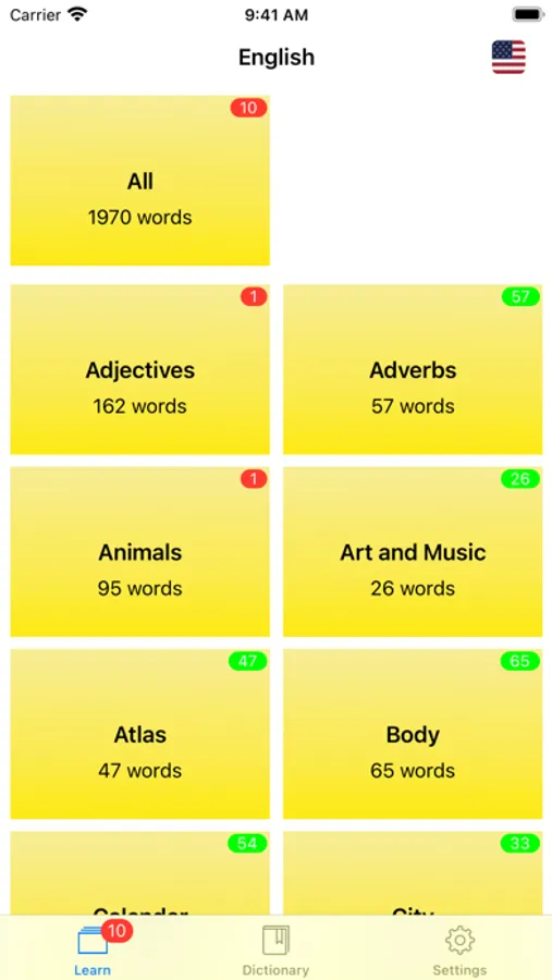 * Easy to use flashcard interface to build your vocabulary. Score yourself as you learn each word and the application calculates when you need to next review the word.