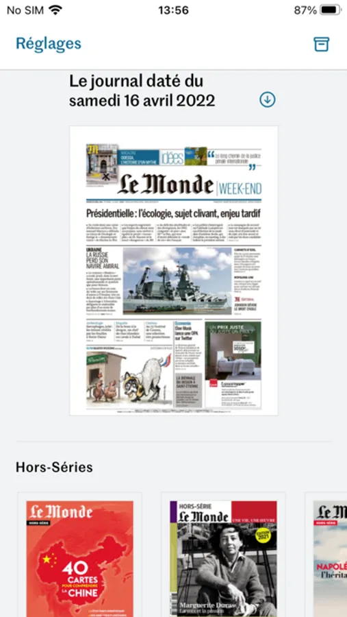 - L’édition du jour disponible dès 13 heures, heure de parution à Paris